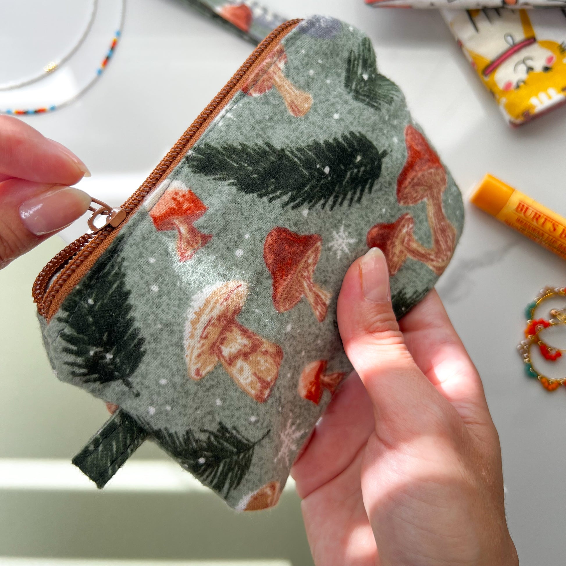 These cute zipper pouches are handmade by my mother, my grandmother was a tailor, and she taught my mom how to sew when my mom was a teenager. My mom started sewing again after retiring and I wanted to support her, and I helped her design these beautiful pouches.