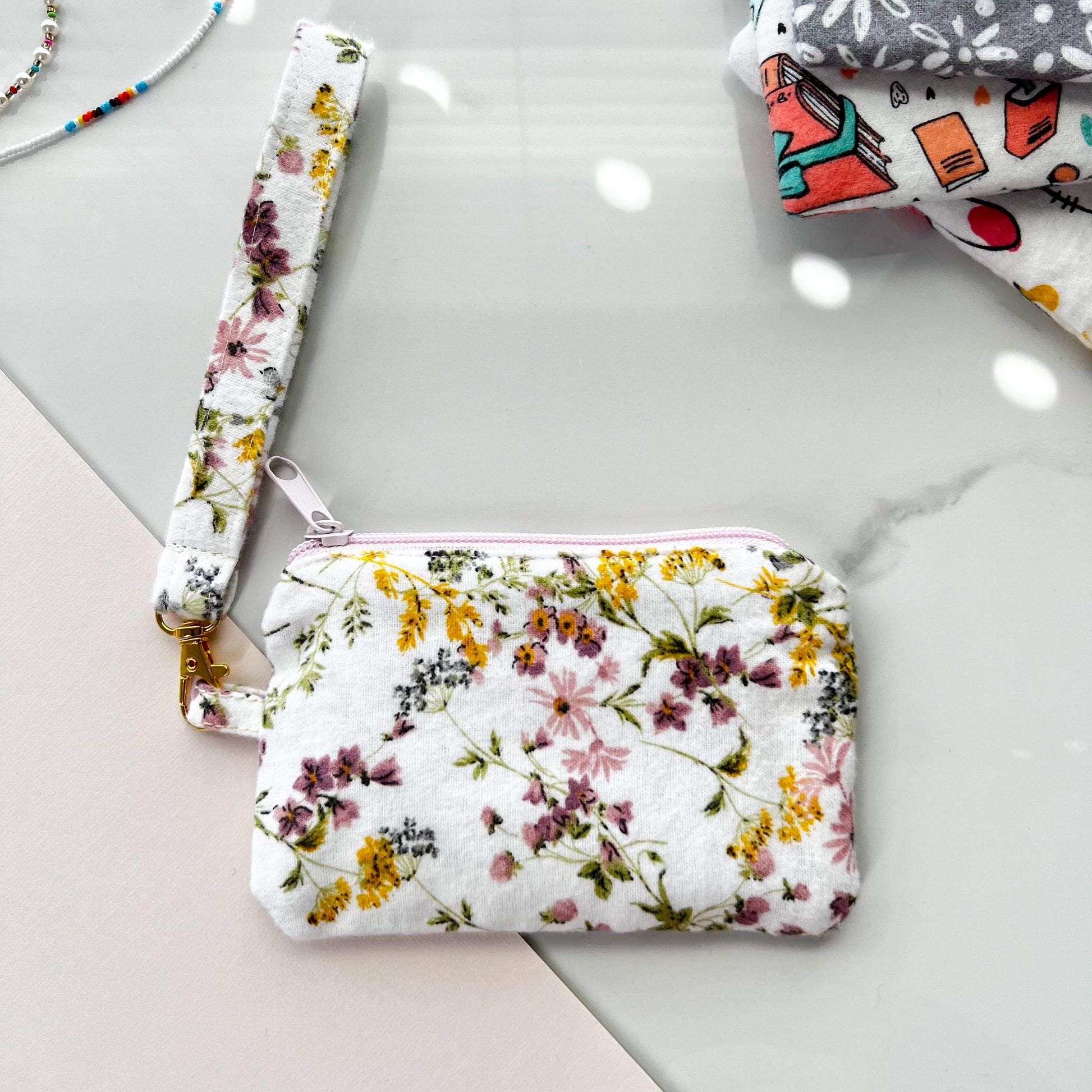 Cute Floral Coin Purse with Wristlet, Fabric Zipper Pouch