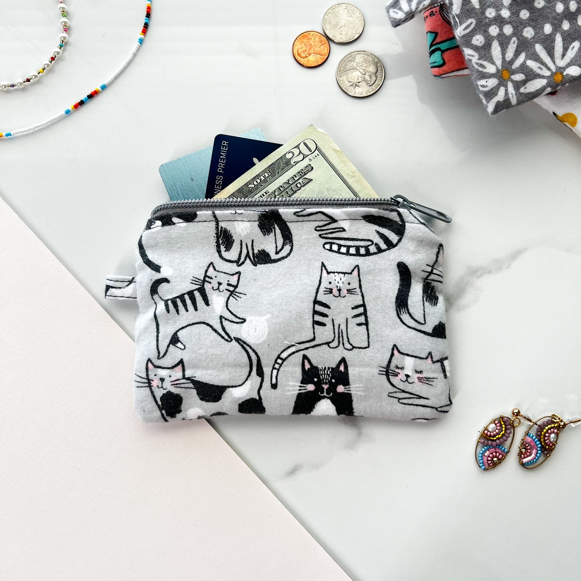Cat Design Fabric Zipper Pouch, Handmade Coin Purse