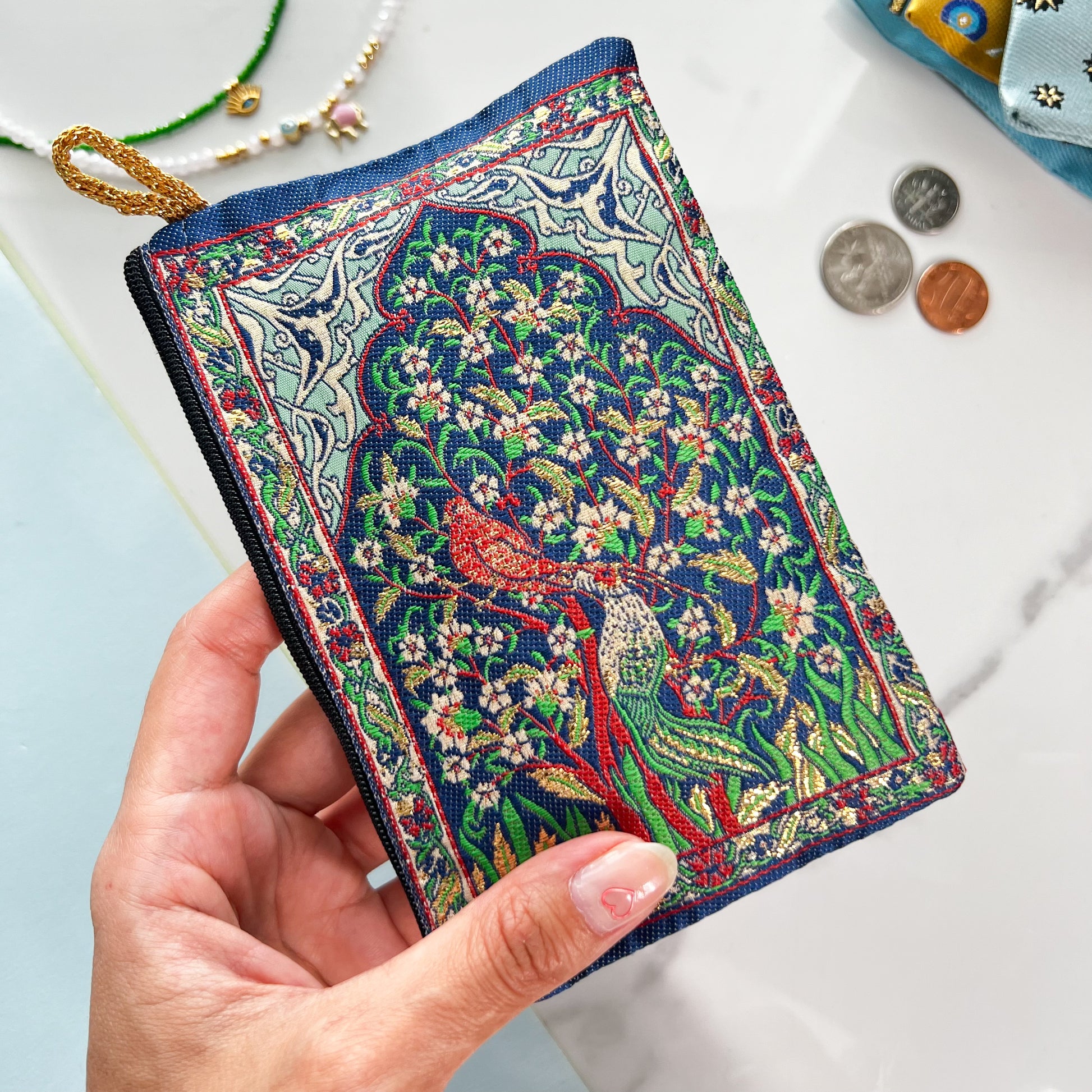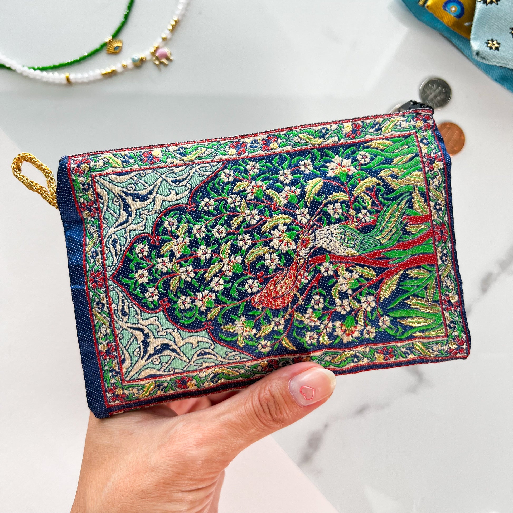 Made from gold threaded fabric featuring traditional rug designs of Turkey. Crafted from high-quality materials, our pouches feature a sturdy zippered closure that keeps your items secure and prevents them from falling out.