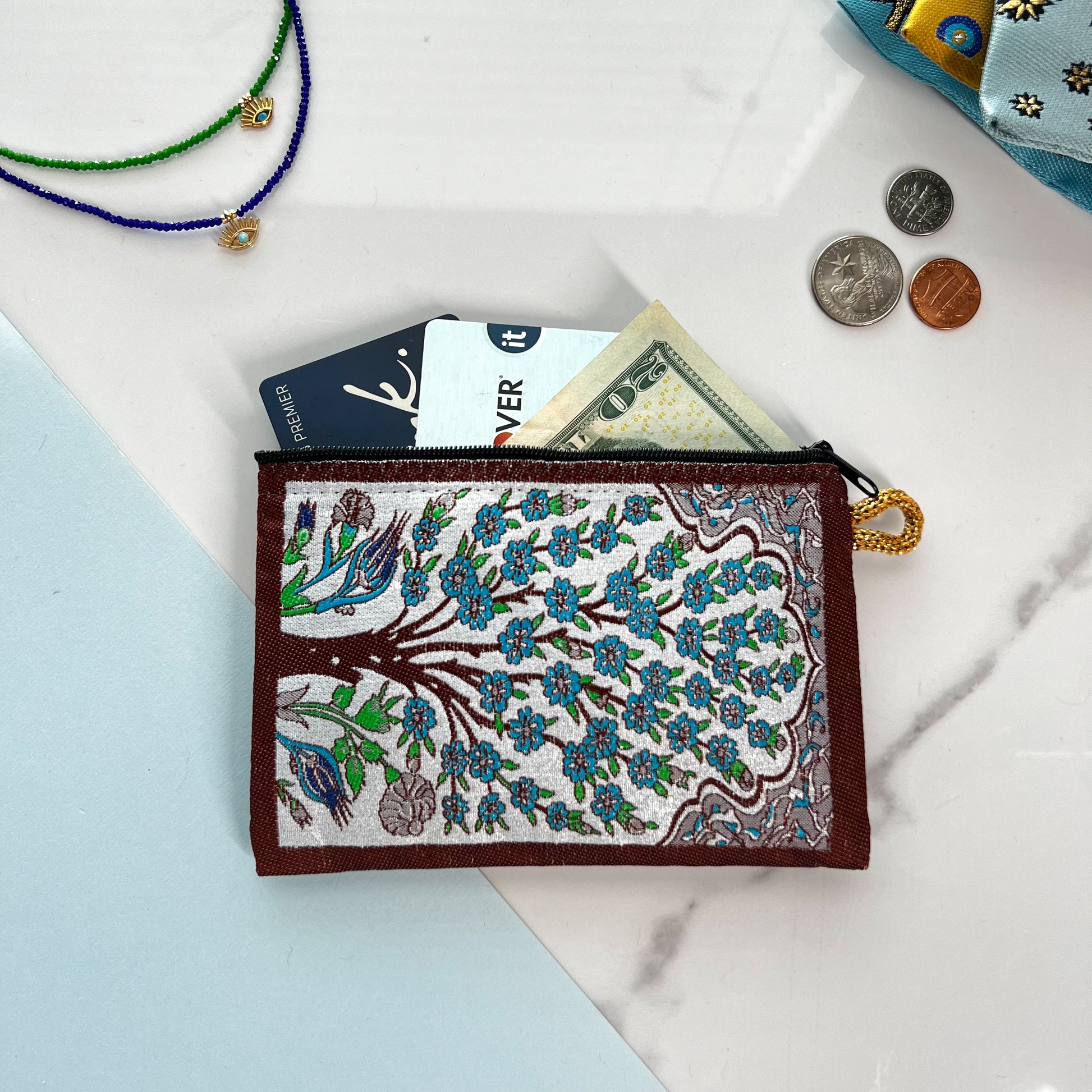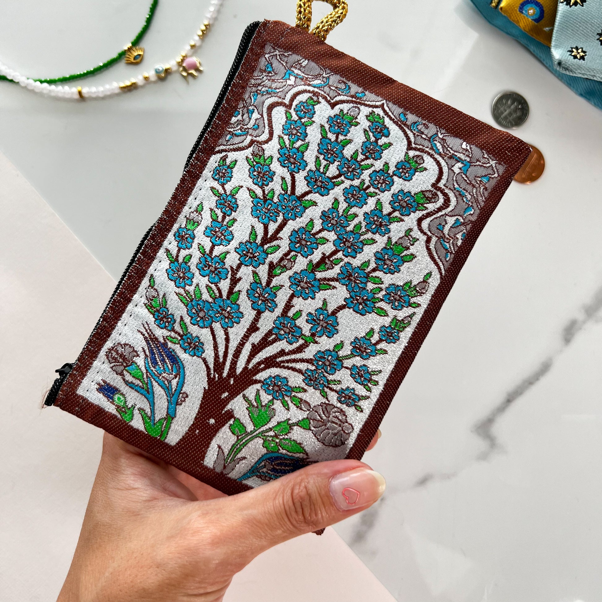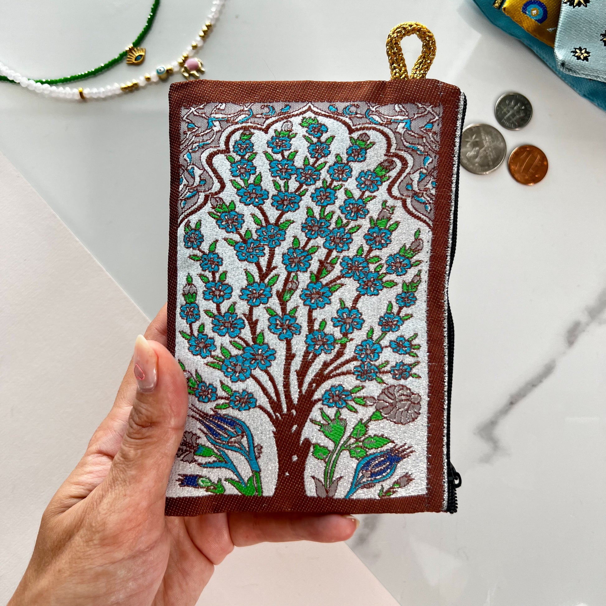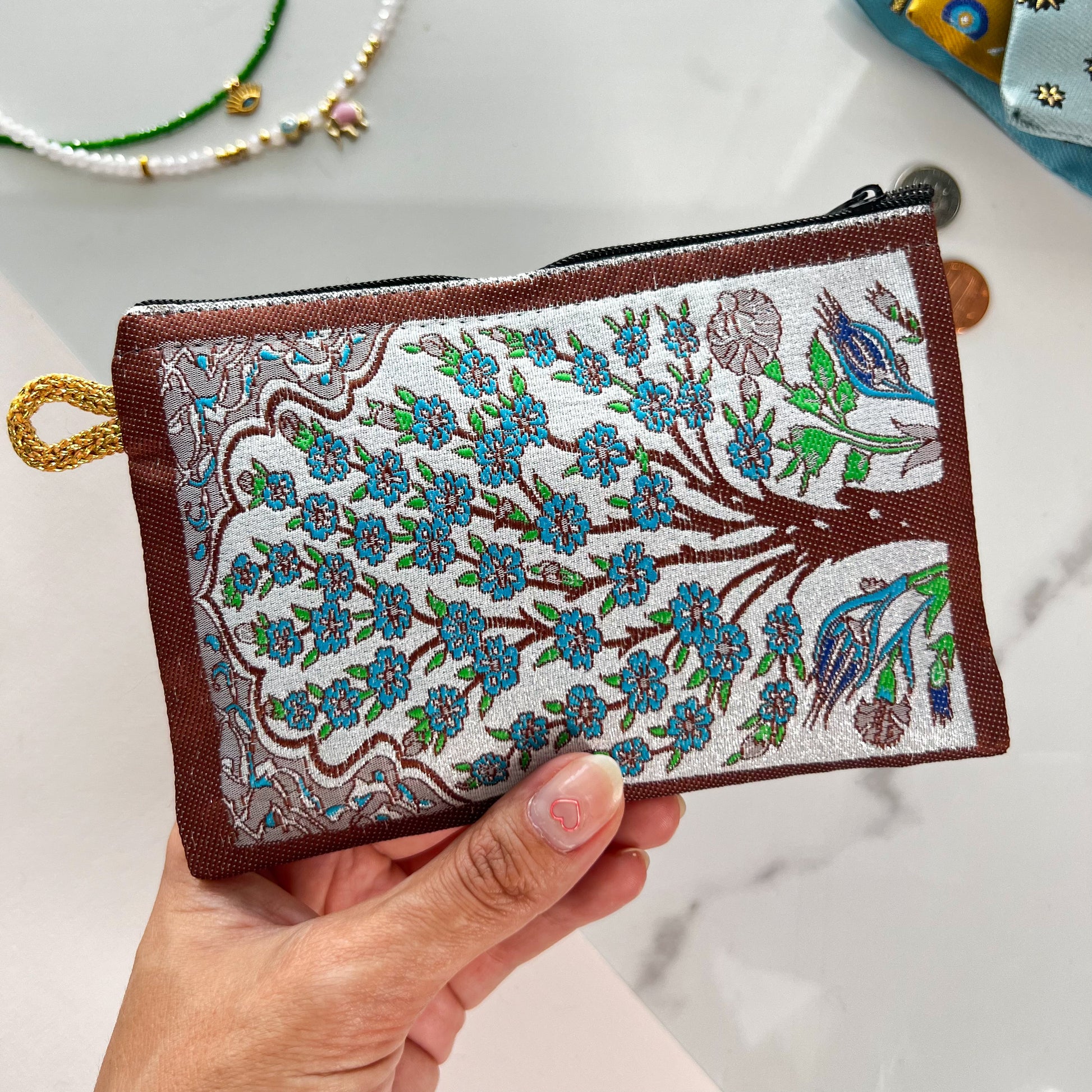Made from gold threaded fabric featuring traditional rug designs of Turkey. Crafted from high-quality materials, our coin purses feature a sturdy zippered closure that keeps your items secure and prevents them from falling out.