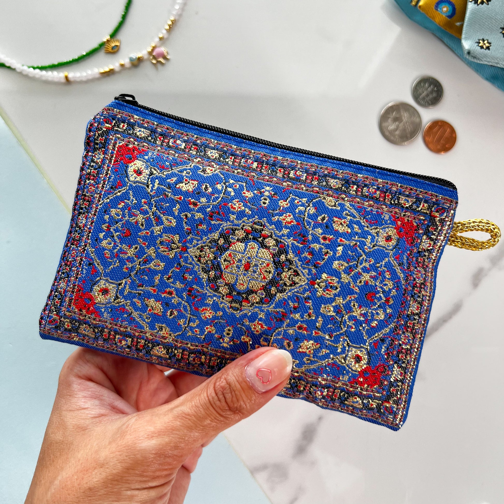 Made from gold threaded fabric featuring traditional rug designs of Turkey. Crafted from high-quality materials, our pouches feature a sturdy zippered closure that keeps your items secure and prevents them from falling out.