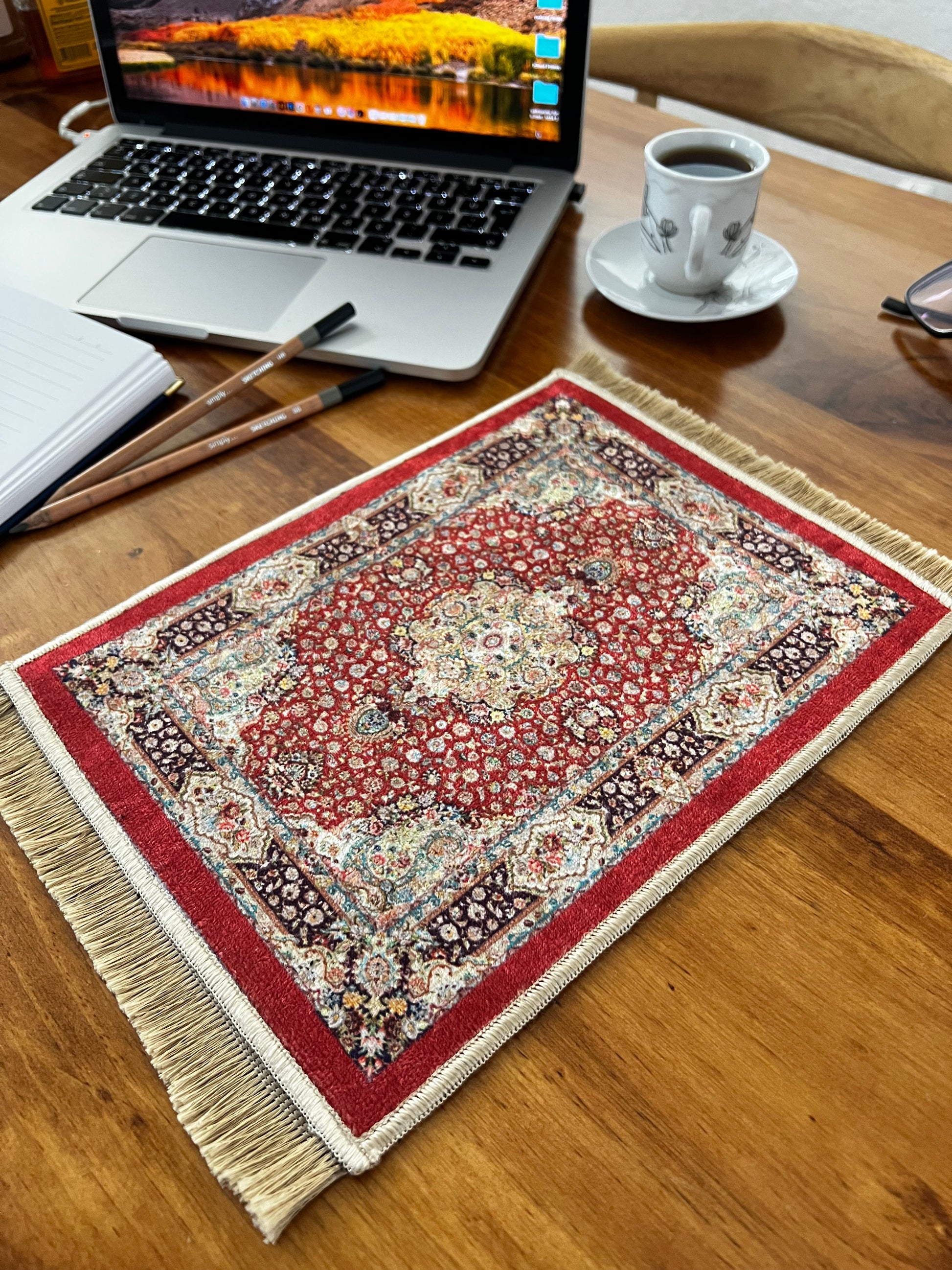 Turkish rug design mouse pads give your offices and home offices vintage and stylish look. You can use them as mouse pads, doll house rugs, coffee table mats and miniature rugs. It is a great gift for coworkers, teachers and home office workers. Also, it is a unique desk accessory for whom likes to be different.