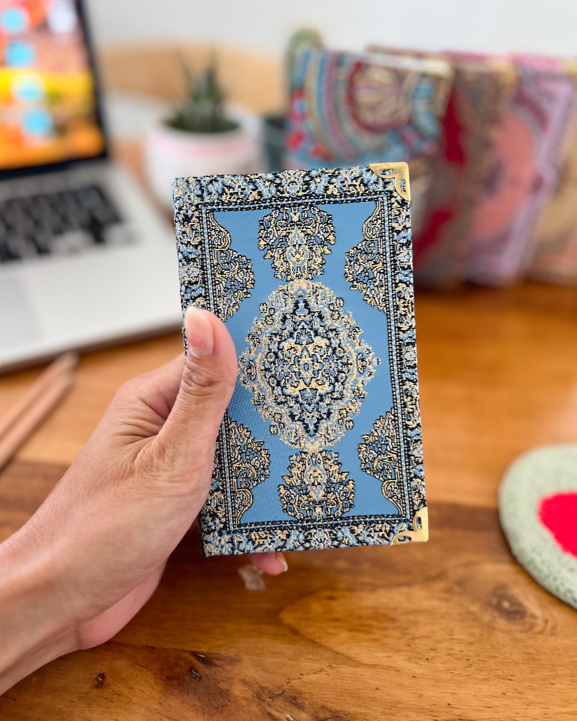 Blue Pocket Notebook, Rug Design Journal, Handmade Notebook