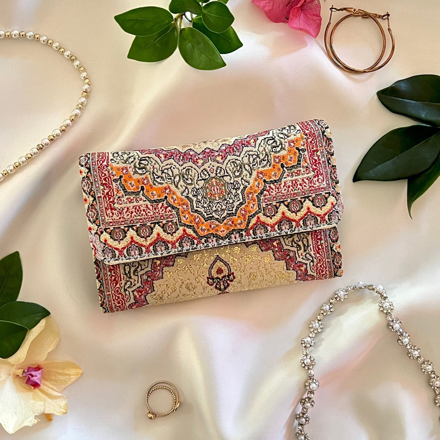 Our Boho wallet is crafted from vegan leather and brocade fabric inspired from Turkish carpet pattern. You will love the soft glimmering gold touch giving these handmade Turkish wallets a luxurious look. The design of the fabric is not a print, it's woven.