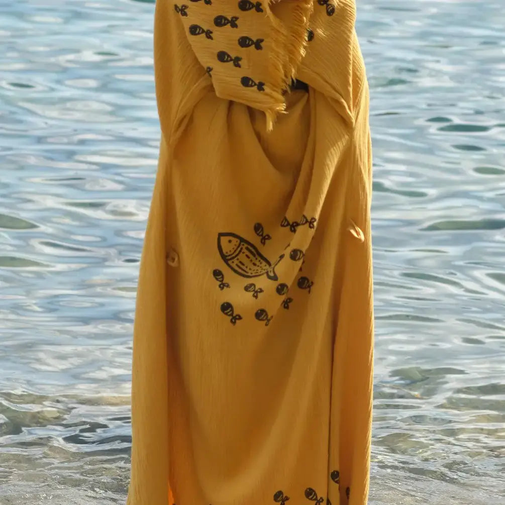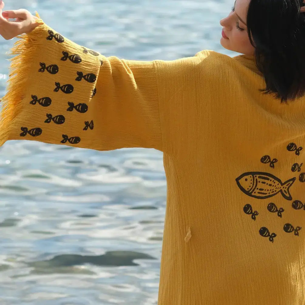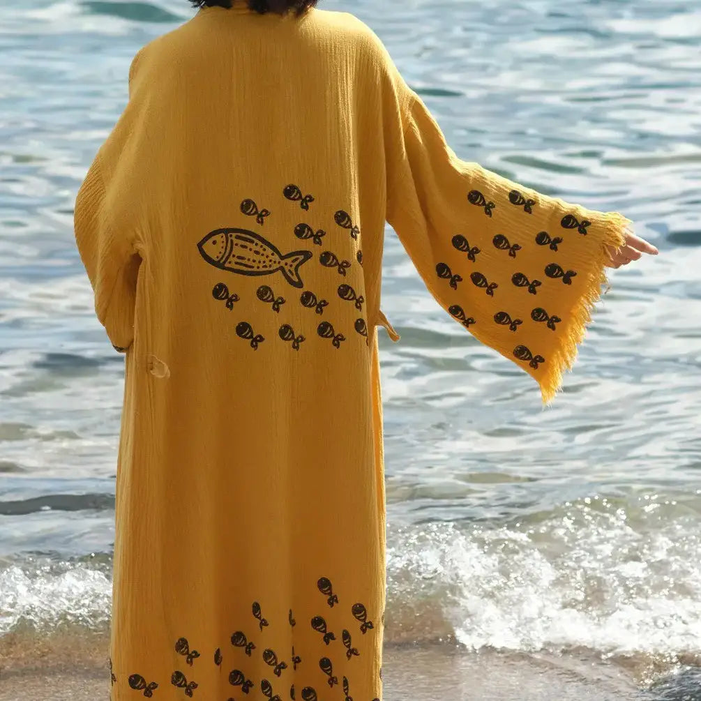 These robes/kimonos are handcrafted in Turkey. The design on them is made with wood blocks by using plant-based dye. All the small details on the designs are handprinted one by one.