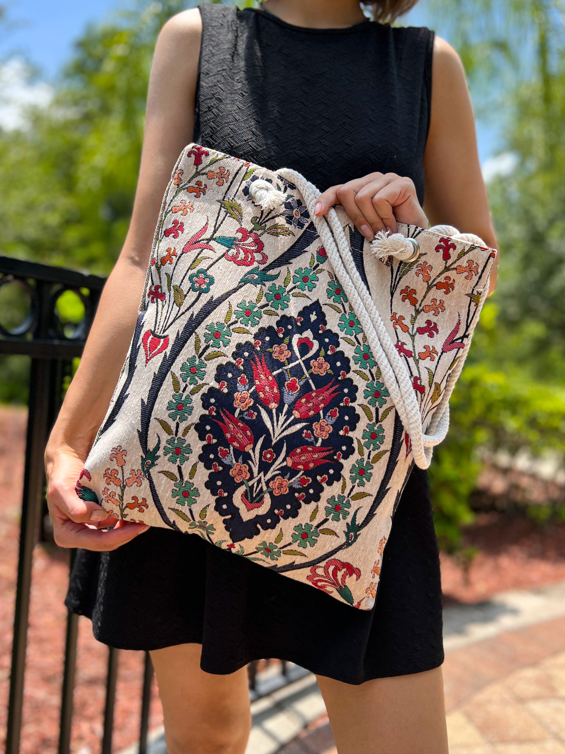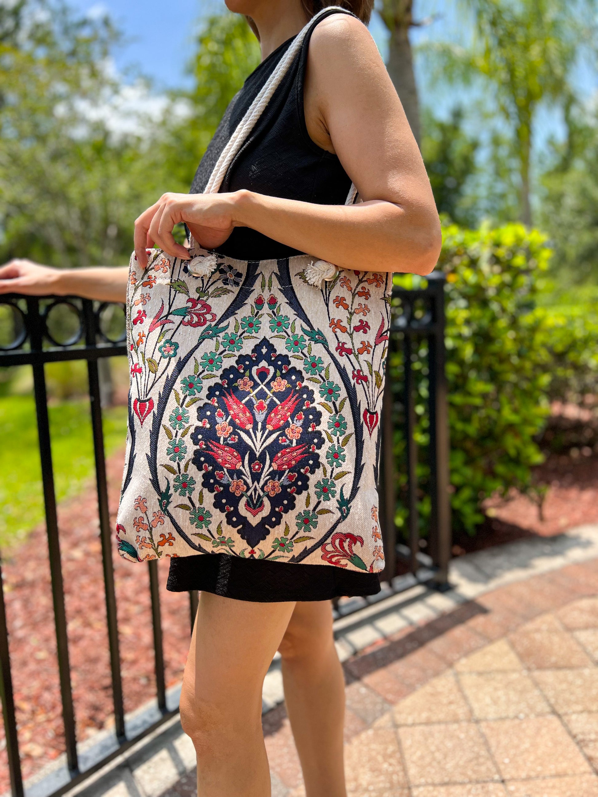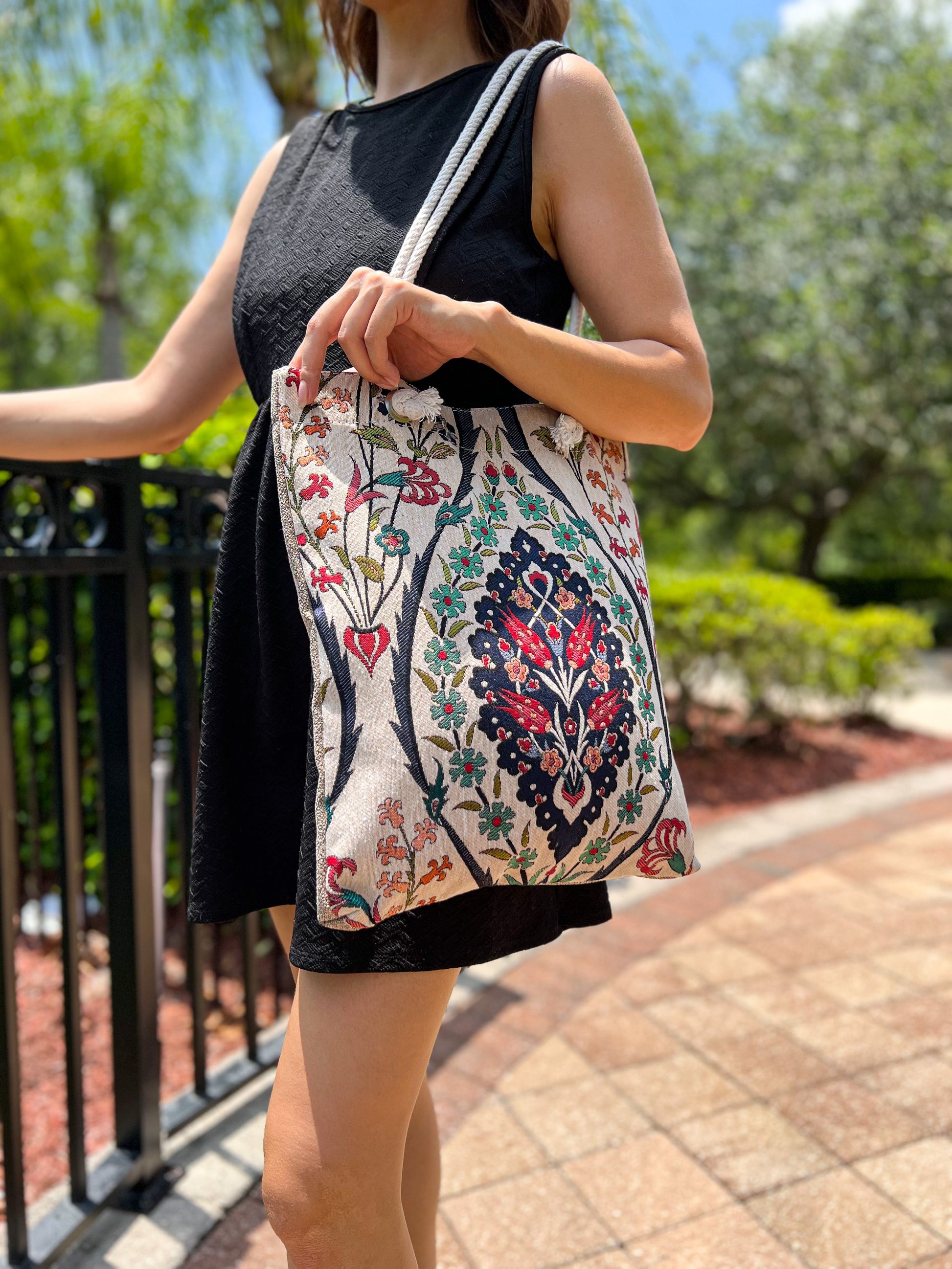 Crafted from premium woven fabric, our tote bag showcases a unique threaded design not printed. Our woven tote bag effortlessly transitions from day to night, complementing any outfit or any occasion.