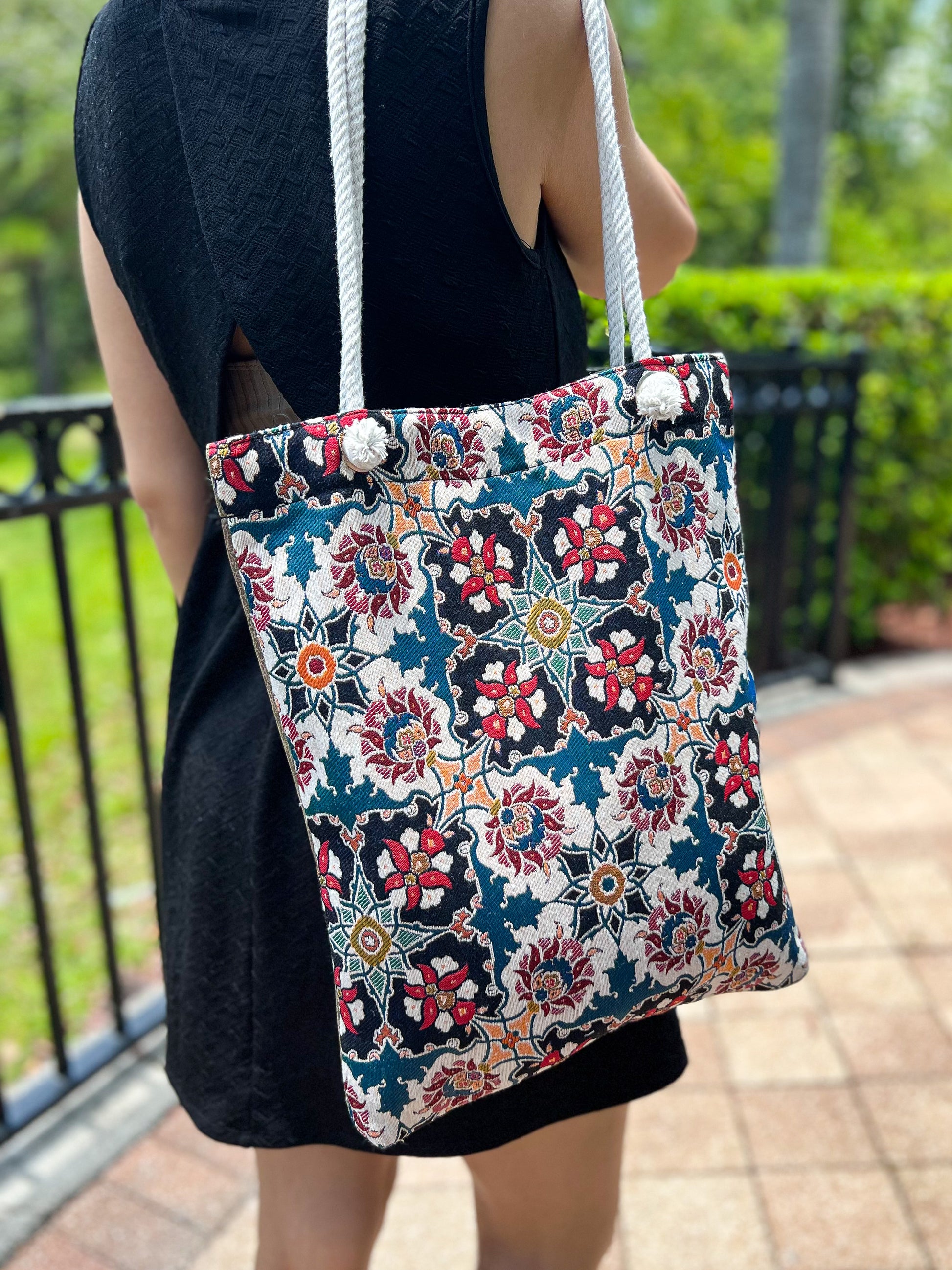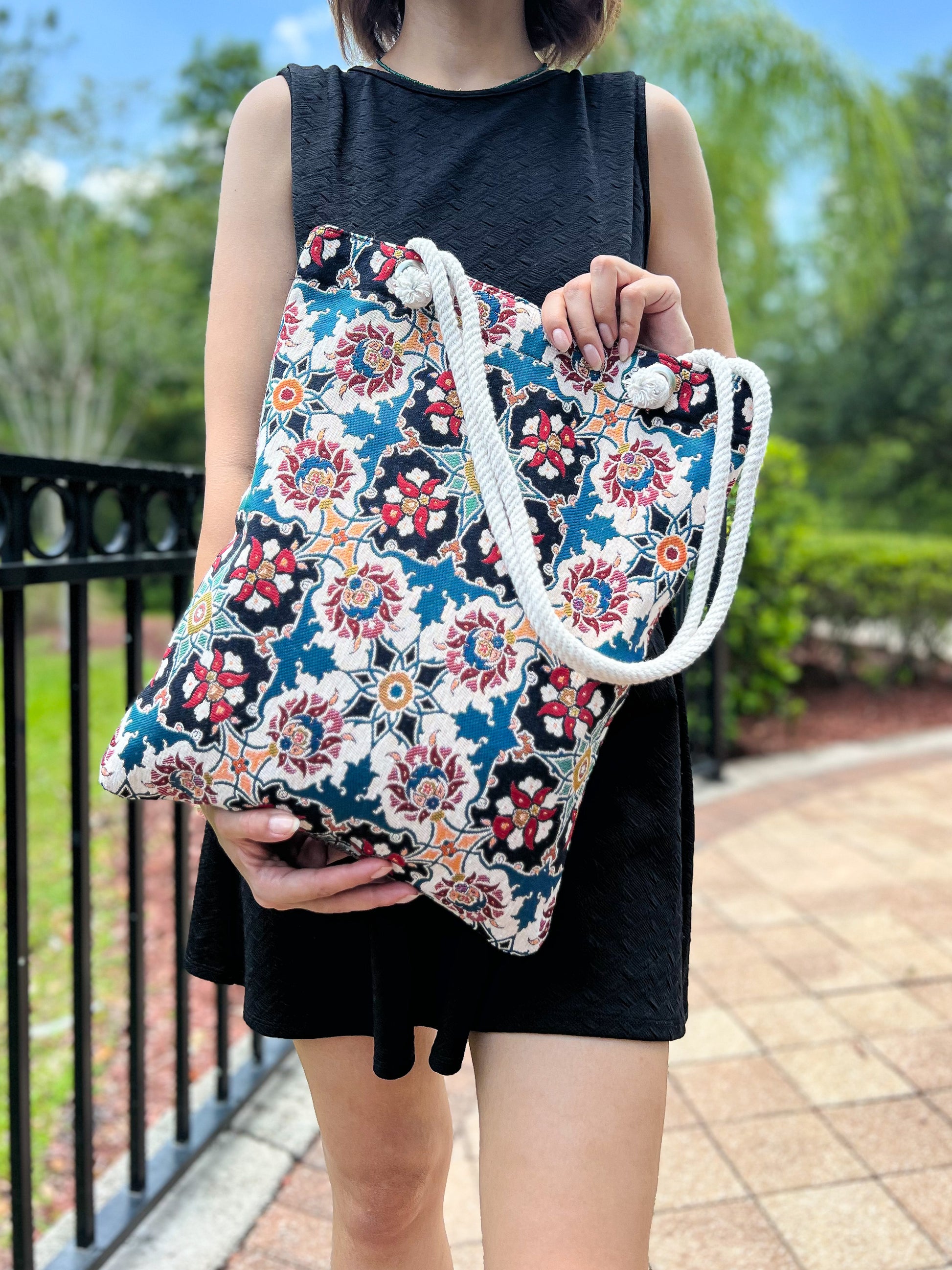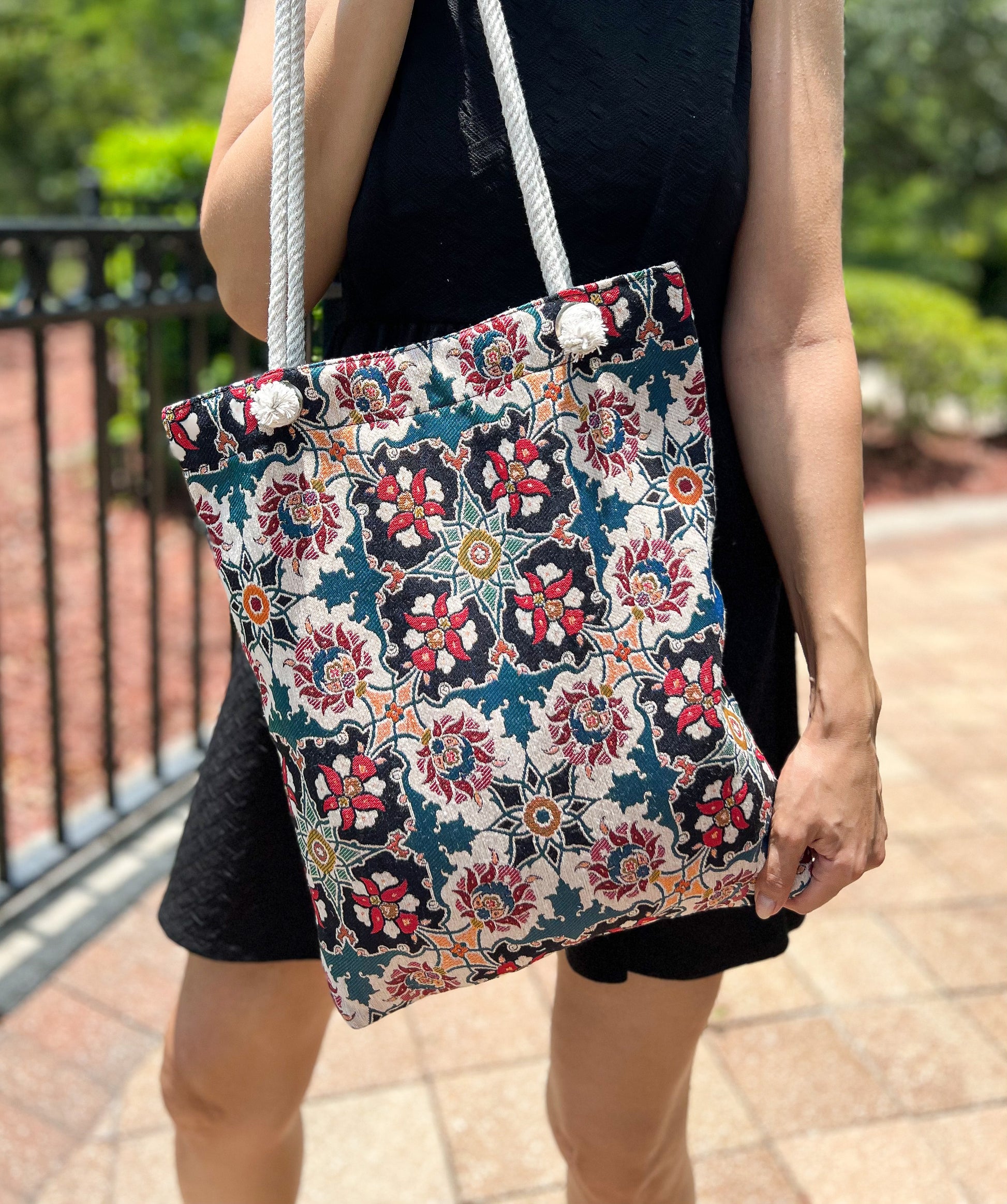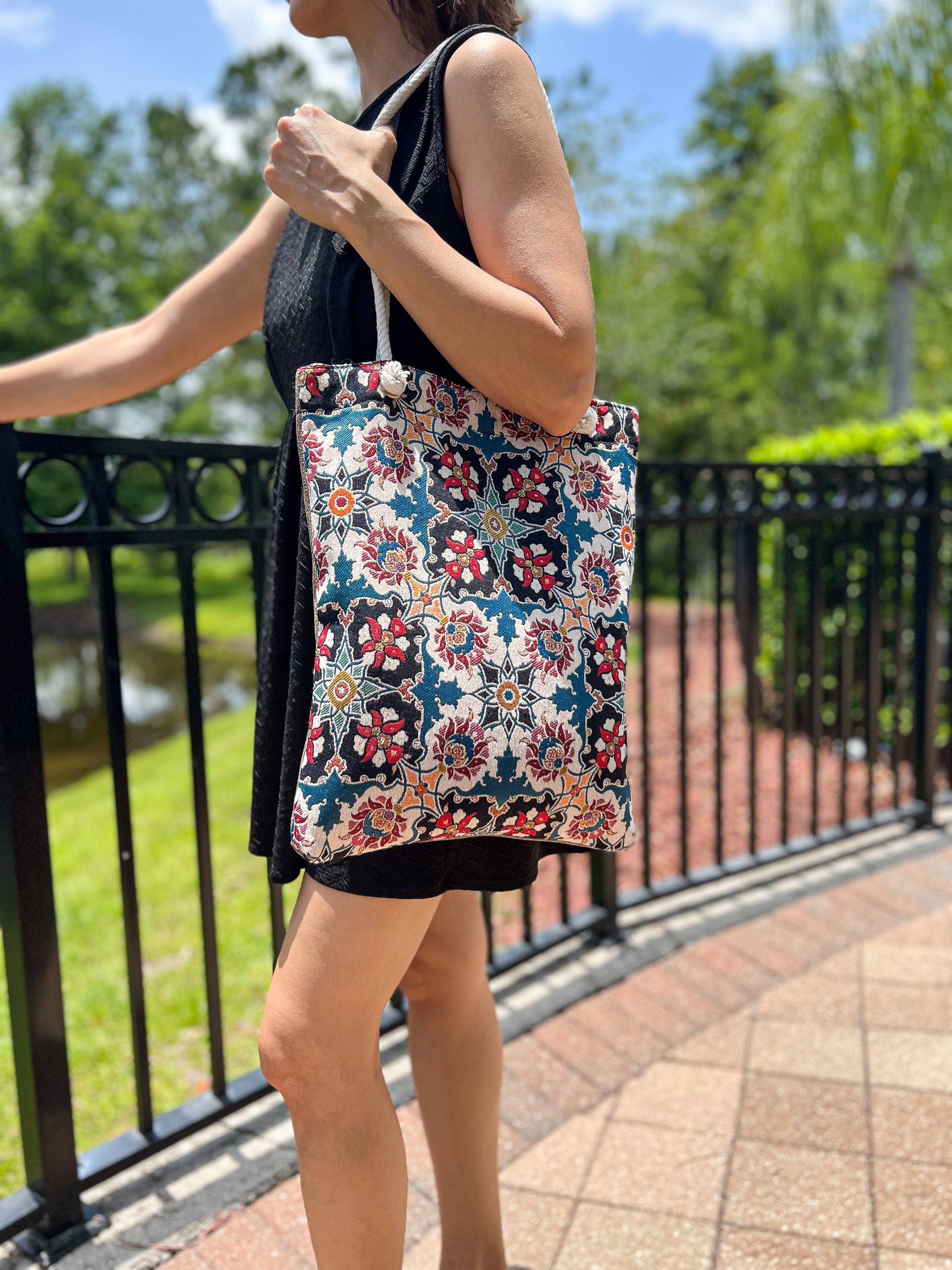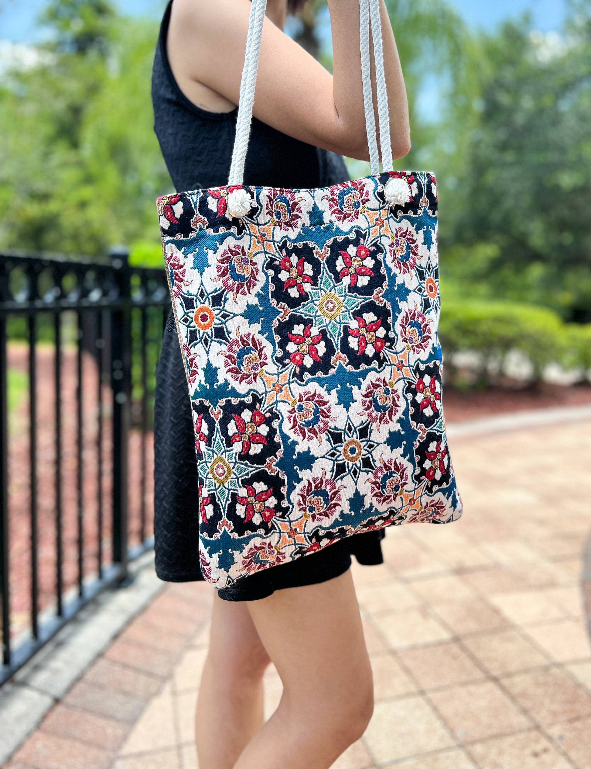 Floral Tote Bag, Handmade Beach Bag, Boho Shoulder Bag