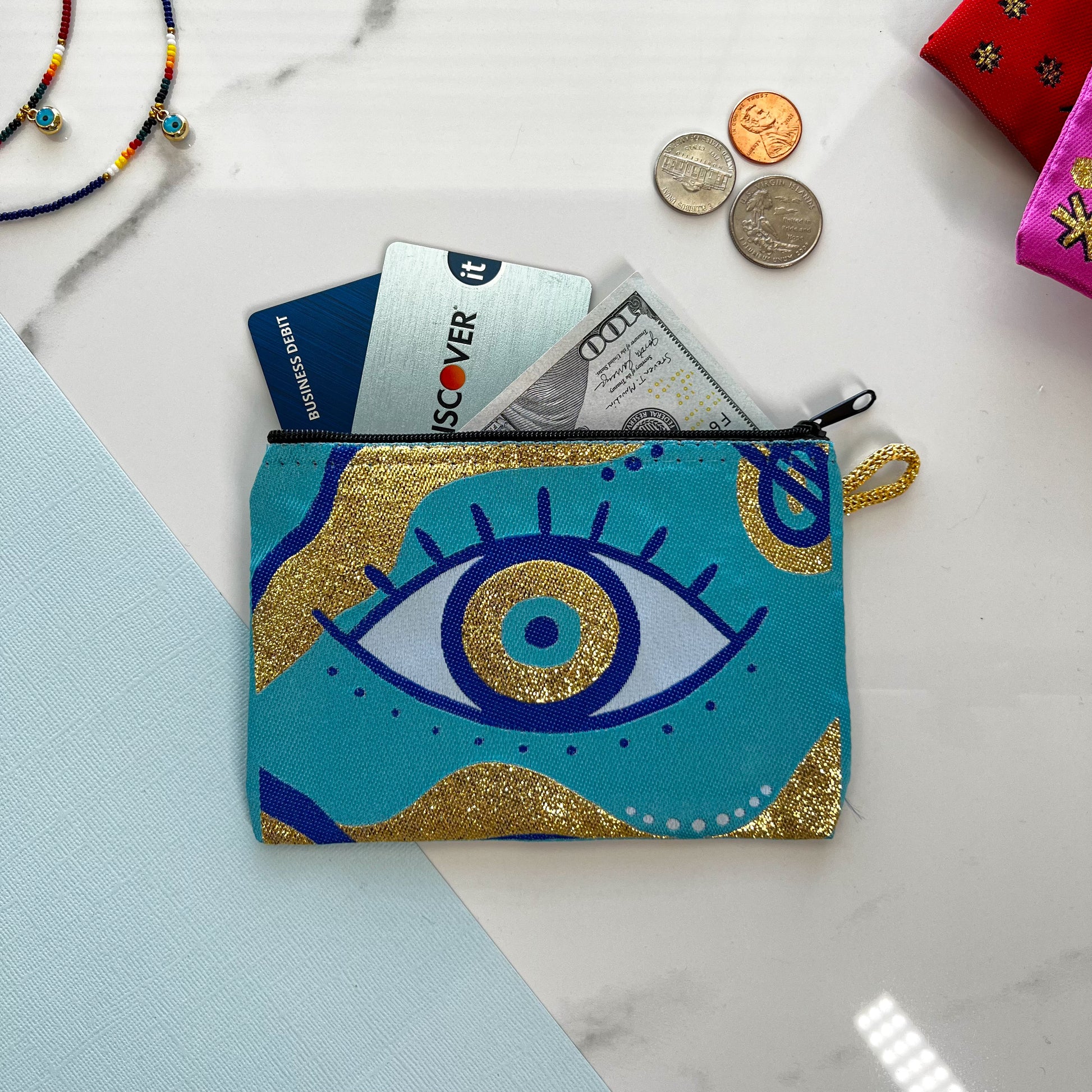 Evil Eye Coin Purse, Fabric Zippered Pouch, Small Pouch