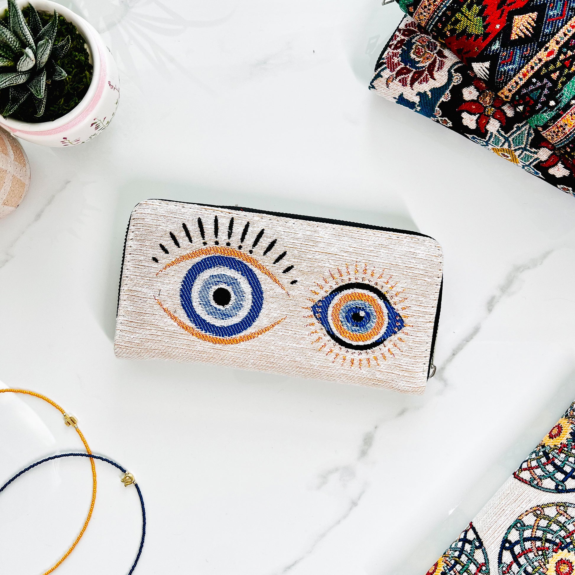 Evil Eye Wallet, Woven Fabric Wallet for Women, Boho Walllet