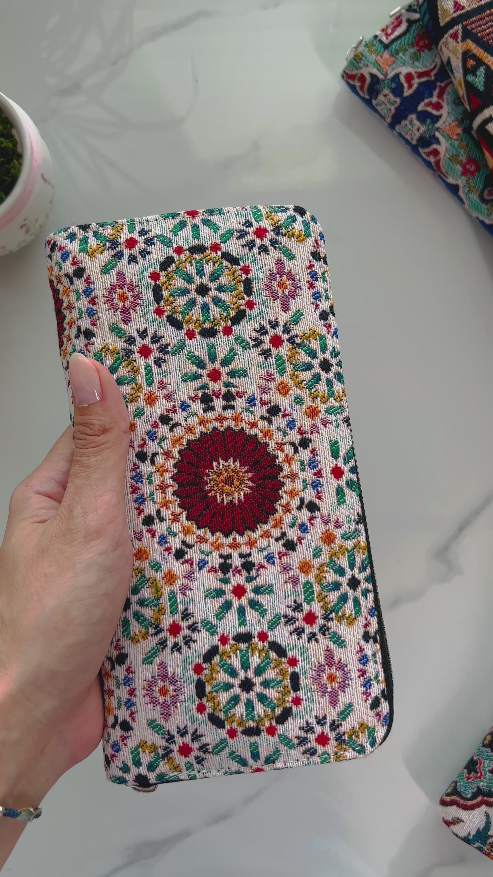 Our Boho wallets are perfect Mother's Day Gift, Birthday Gift for your bestie and anniversary gift for her. They are %100 cotton fabric and vegan leather. Look no further than our beautifully crafted boho rug design women's wallet!