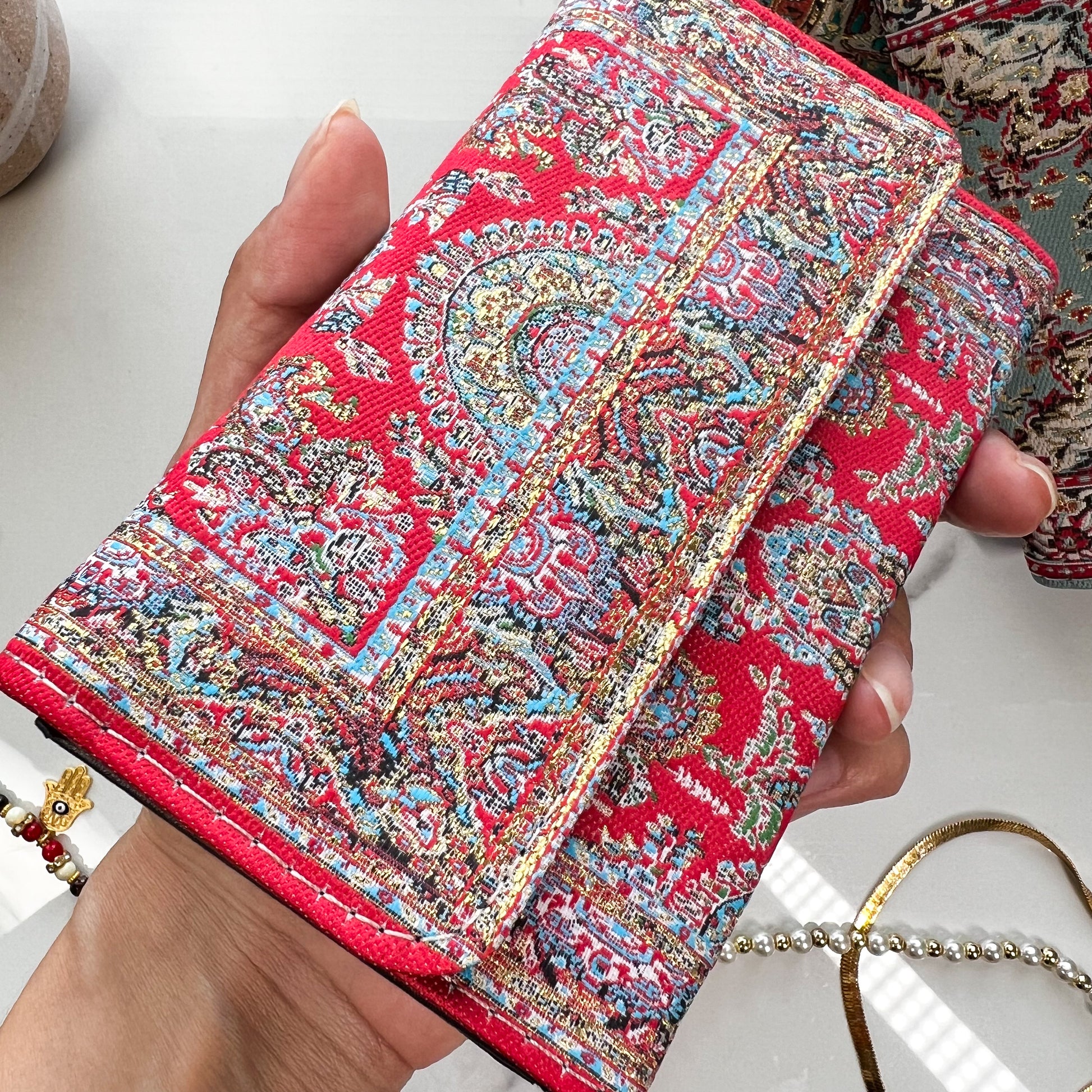 Rug Design Wallet, Small Trifold Wallet, Handmade Vegan Wallet